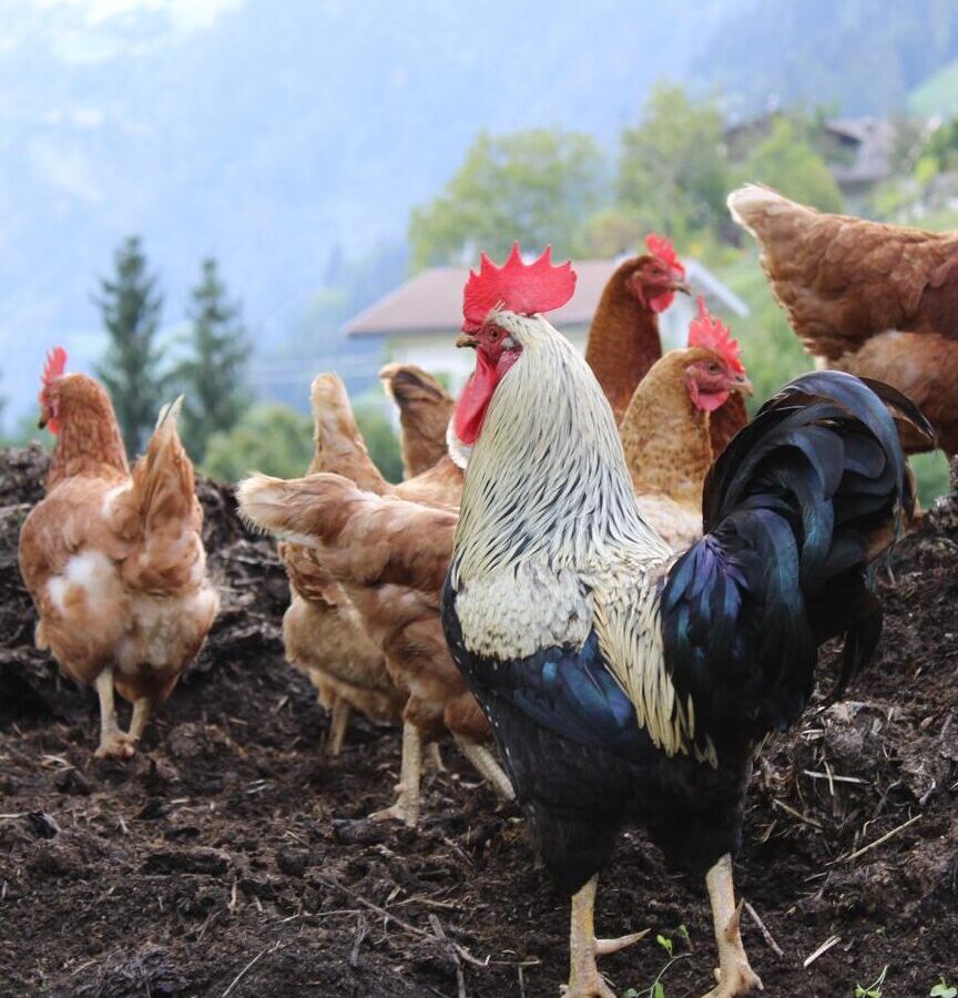 Kühe, Schafe, Schweine,  Katzen, Hühner, Enten, Bienen und Esel leben bei uns auf dem Hof.